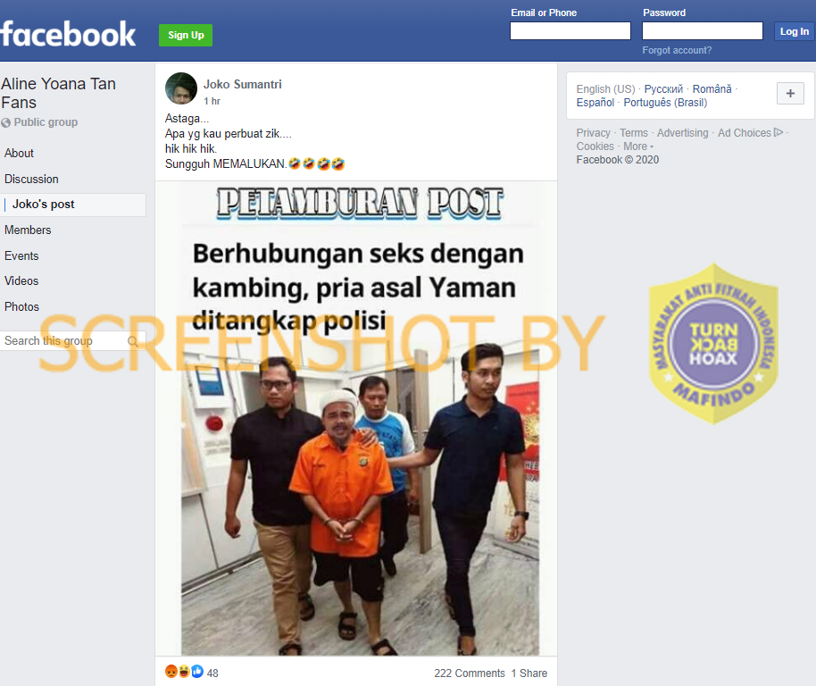 Akun Facebook Hakim Waluyo (fb.com/hakim.waluyo.31) pada 27 Mei 2021 mengunggah sebuah gambar yang memuat foto sebuah kapal dengan tulisan “Evergreen” di bodinya. Gambar itu pun diberi sejumlah teks dalam bahasa Inggris yaitu: “1200 kids rescued”, “1350 dead children found”, “6 Stories of Weapons (WMDs) Guns, bombs, Missiles found”, “30 years of Climate Change Weapons Seized (worth 40 Billion)”, “Nuke Warhead heading to Romania Seized”, “Ship was rigged withs Explosives”, “2 million viles of fake/deadly vaccines found”, “120 Billion Evergreen Cargo Seized”.