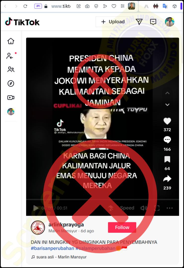 Tangkapan layar unggahan dengan klaim menyesatkan bahwa Megawati menjabat di BRIN untuk mengubah sejarah G30S