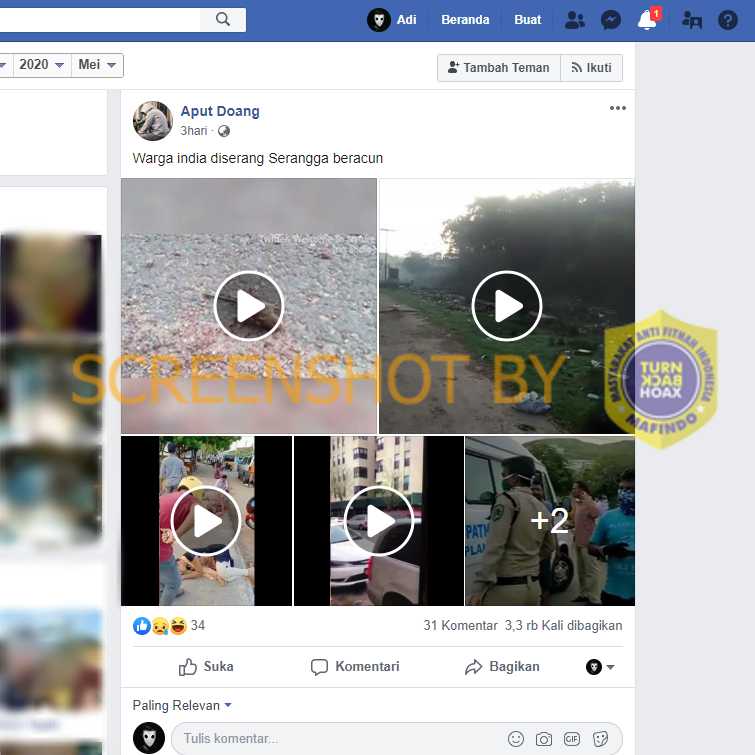 Salah penyebarnya di media facebook adalah akun Ajib ( facebook.com/levis.ajib ) yang menuliskan narasi sebagai berikut;